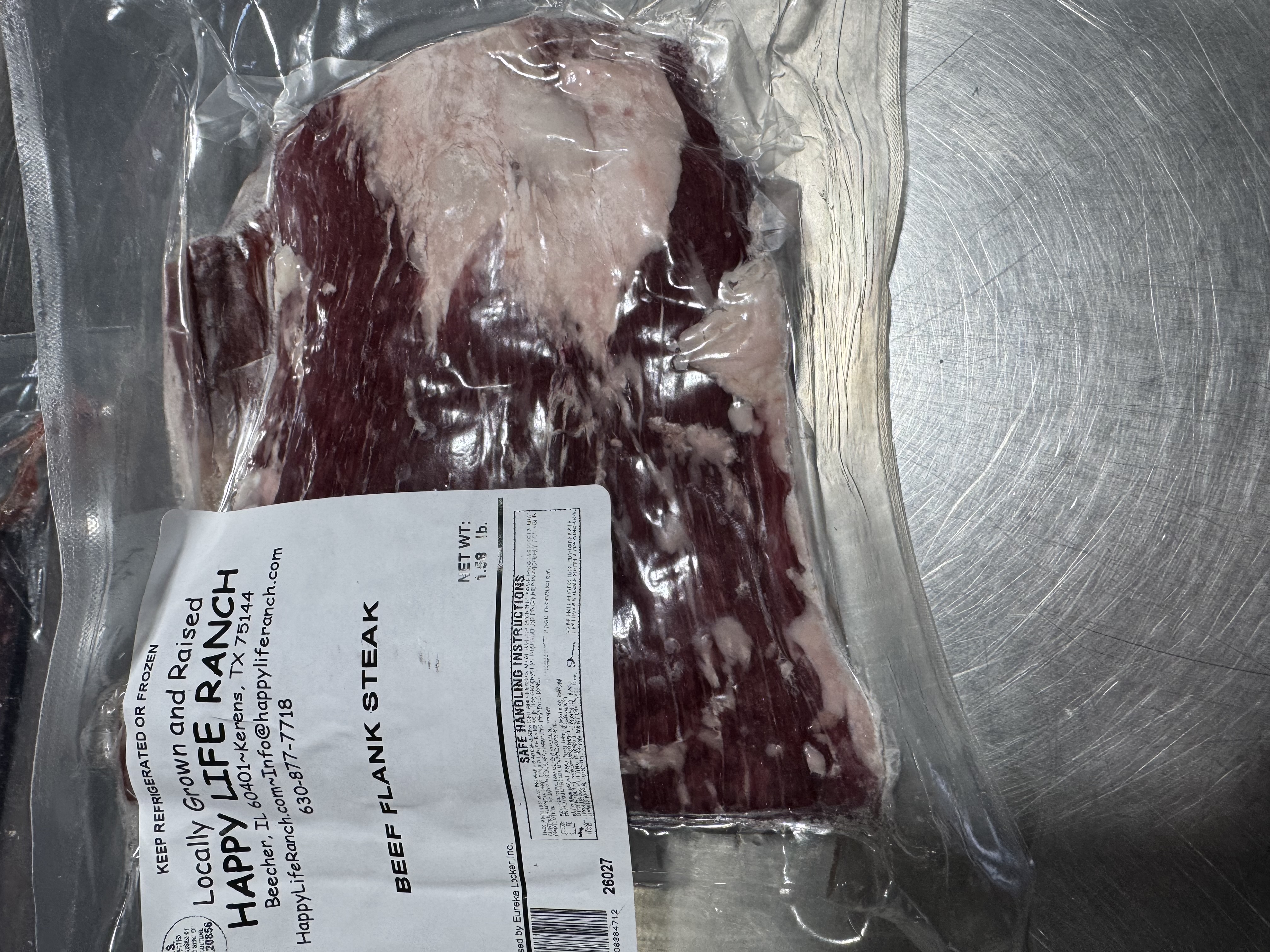 The Beef Flank Steak offers a robust, beefy flavor that comes from its leaner, less tender muscle. Its natural toughness makes it ideal for bold, spicy recipes like fajitas, tacos, or stir-fries, where its rich flavor can really shine.